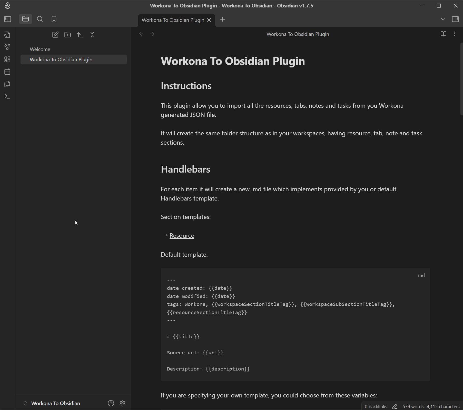 Workona To Obsidian plugin is still evolving as I'm doing it on my free time for my use.