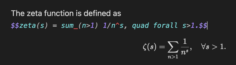 For example, $pi$ will be rendered using Typst, whereas $\pi$ will be rendered as regular LaTeX.