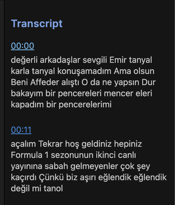 - Language: Preferred transcript language code (e.g., "en", "fr", "de")