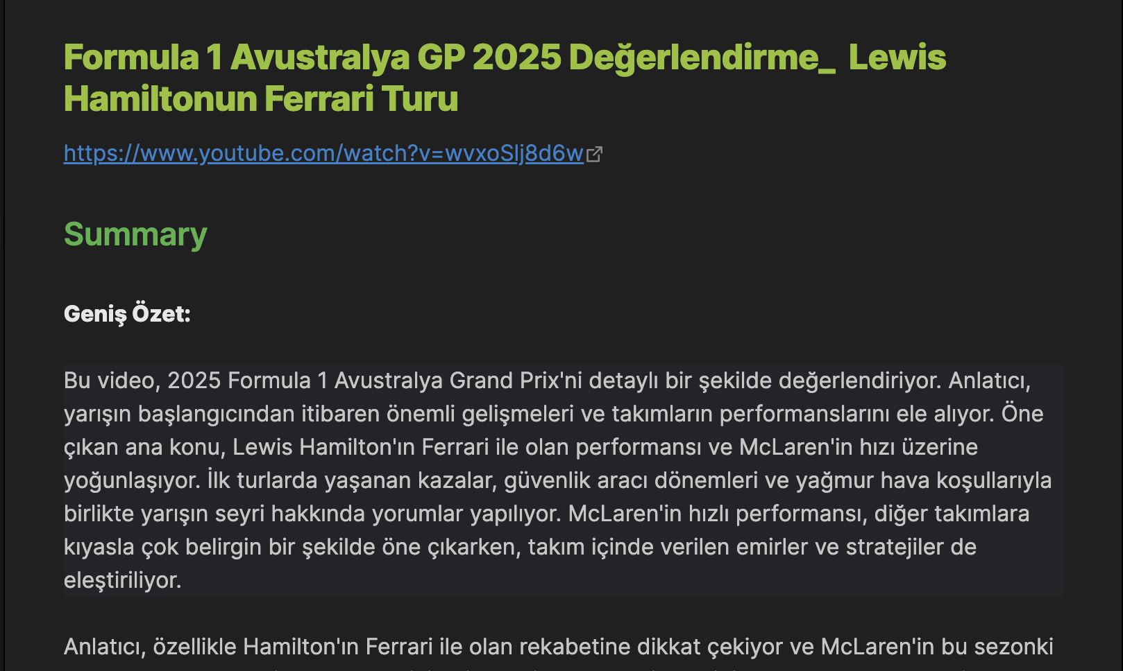 - AI-powered summaries: Automatically generates concise summaries of video content using OpenAI's GPT models